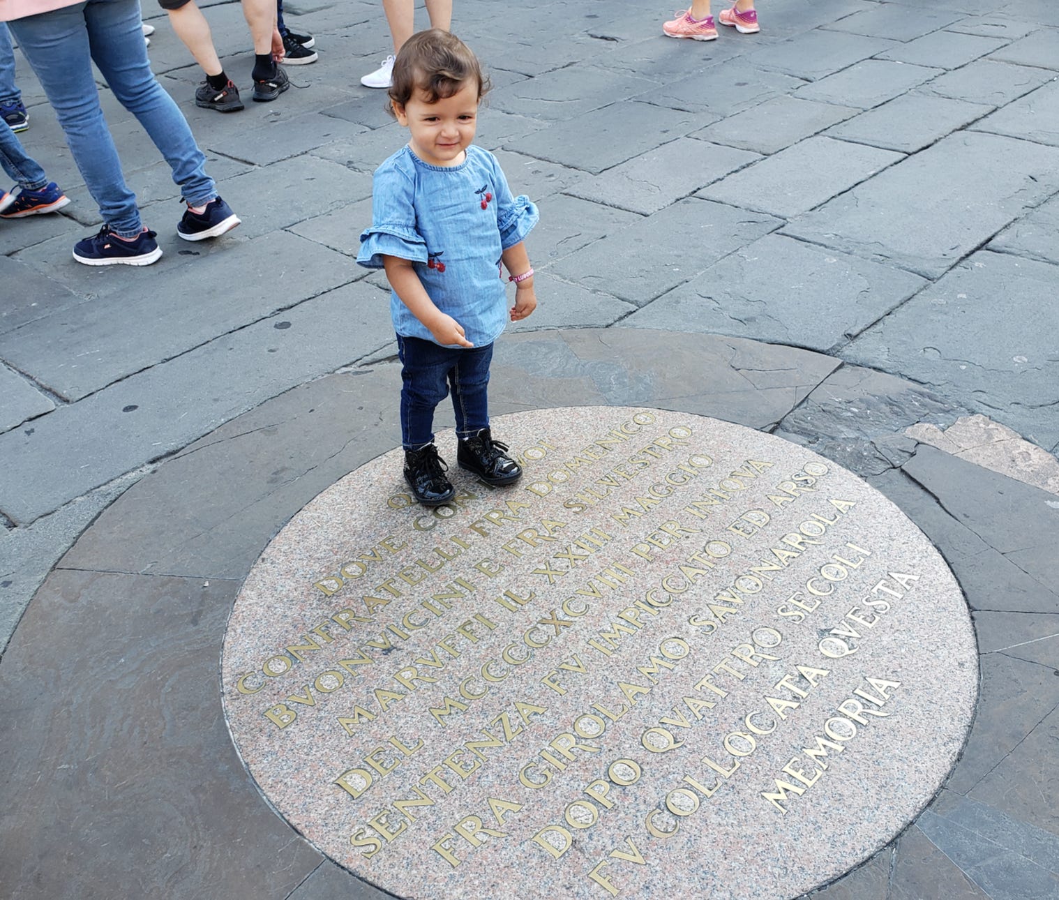 The fact that a four year-old girl was dancing on it was indicative of Savonarola’s significance 500 years later.