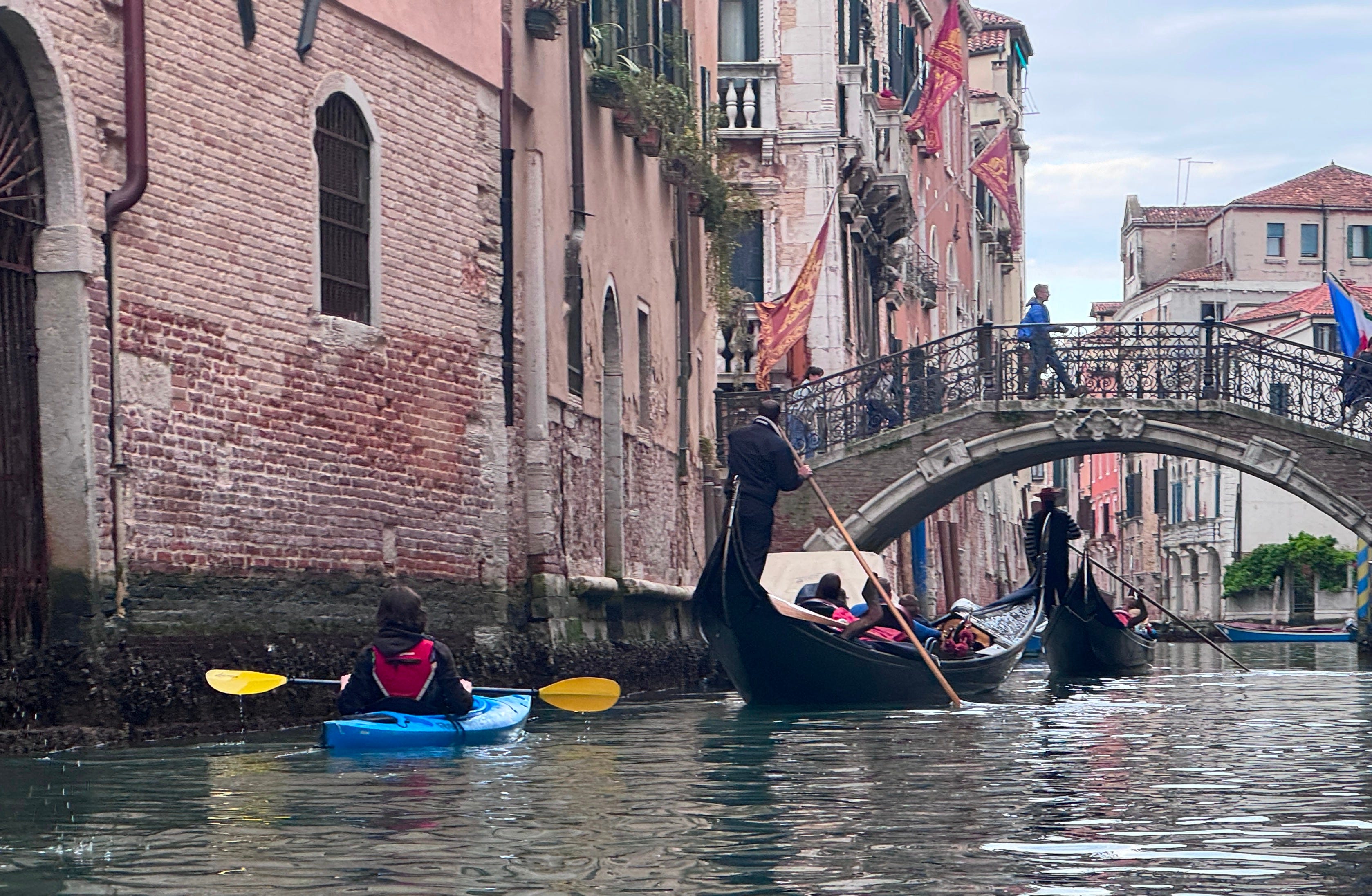 One definitely has a different view of Venezia from a kayak. Even the gondoliere are higher up on their perches, but they’re not connected to the water as much as we kayakers are.
