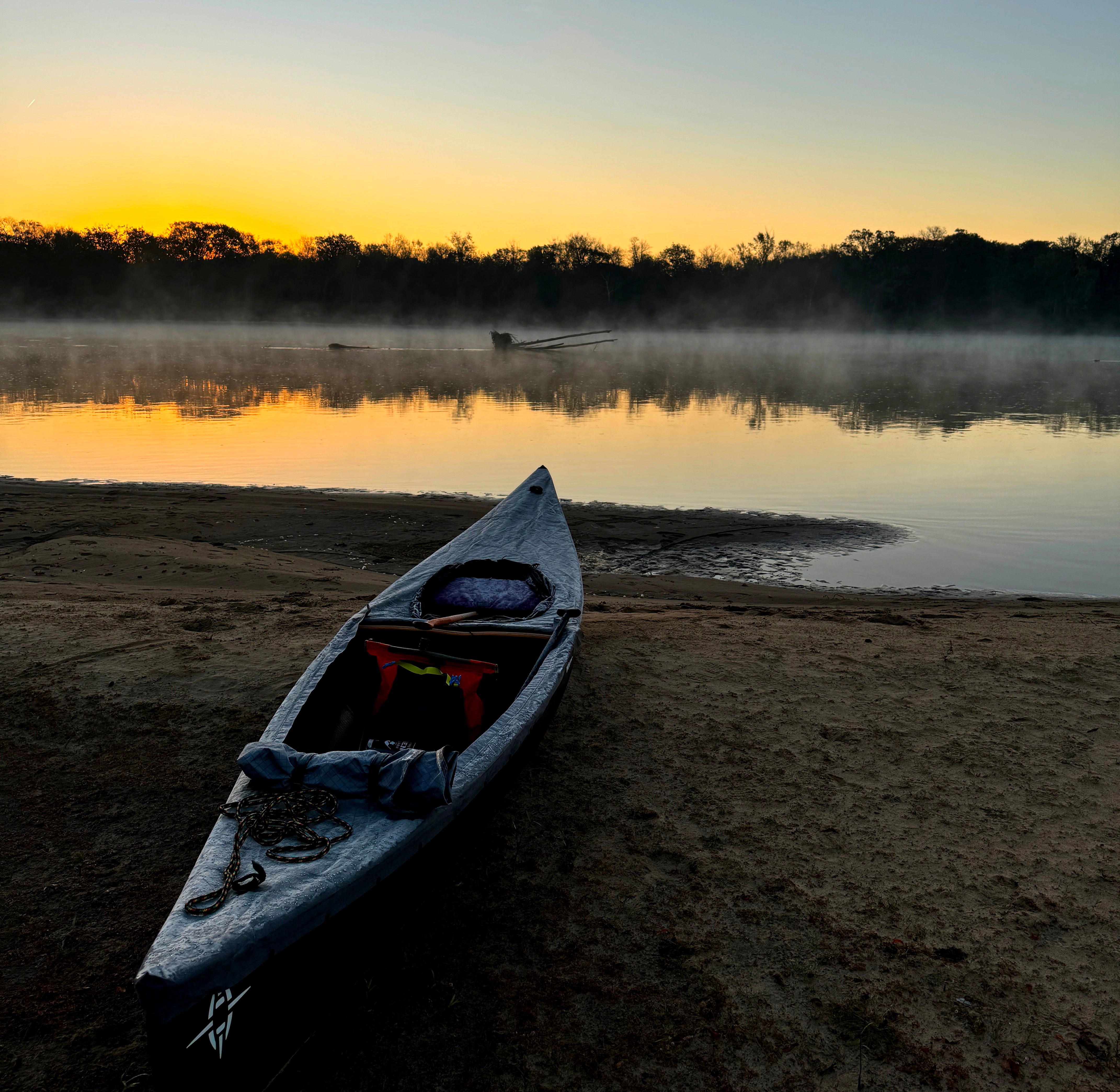 I lit the stove in the shelter of my canoe and waited for water to boil. Looking downstream, I saw whitecaps moving upstream against the current and leaves were being stripped off the oaks in the park next to the take-out. I involuntarily shuddered.
