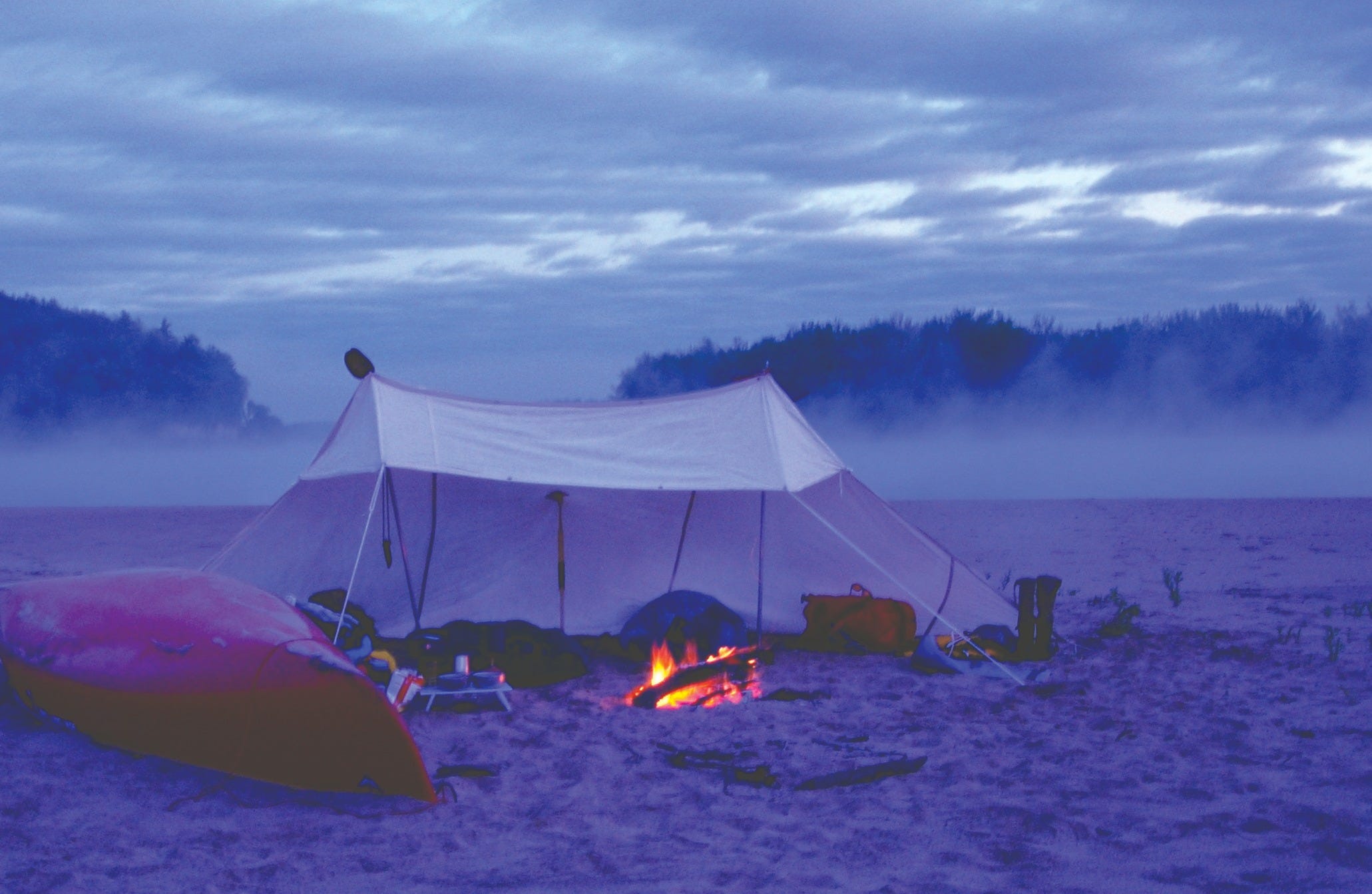 With just a small, mostly smokeless fire in front of it, the Whelen becomes a giant reflector oven, baking the occupant with a luxurious heat, allowing indifference to the frigid gusts that play just inches beyond the edge of the creamy white canvas.