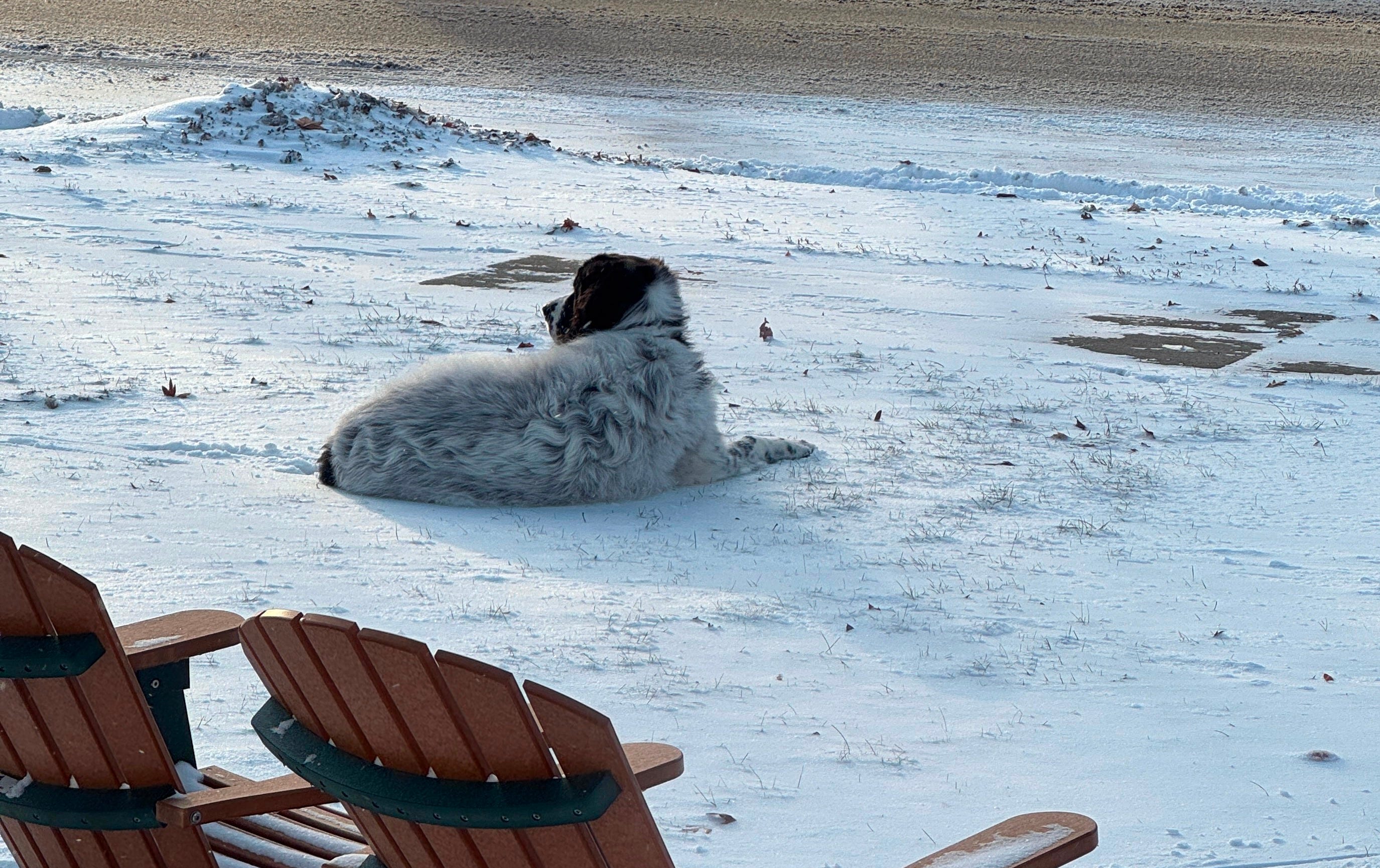 It’s cold out. Nine below zero. Yet there is she is, just sitting. One bark every 20-30 seconds, like an auditory lighthouse, a sound beacon, warning all evil that she is on duty.